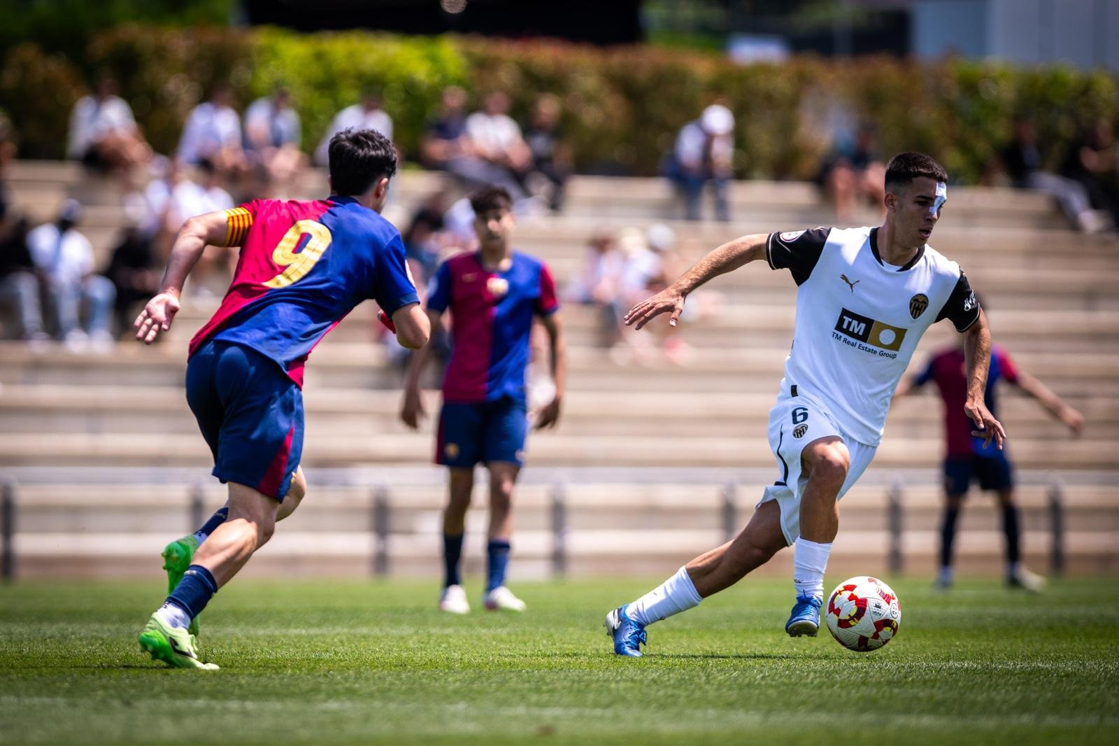 The Valencian youth team continued to press in the Barcelona area, including set-piece opportunities. However, a quick counter-attack from FC Barcelona after a corner kick resulted in Arnau Pradas extending their lead.
